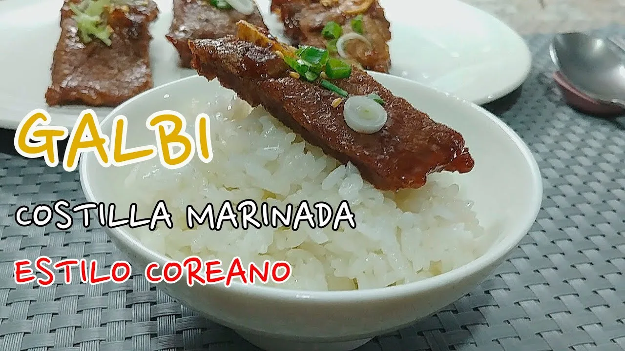 Es la forma más común de servir el Galbi, asado a la parrilla y acompañado de arroz y banchan (pequeños platos de acompañamiento típicos de la comida coreana).